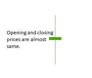 The opening price and closing price of a security are almost equal. In other words, the Doji has a very small or nonexistent body, and upper and lower wicks of similar length. The Doji candlestick pattern suggests indecision and a potential reversal of the current trend. The length of the upper and lower wicks in relation to the size of the body can provide further clues about the strength of the potential reversal. A long upper wick suggests that buyers pushed the price up during the trading session, but the selling pressure eventually outweighed the buying pressure, resulting in the price closing near the opening price and visa versa.