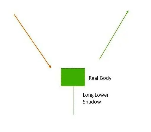 Candlestick pattern that occurs at the end of a downtrend. It has a small body located near the top of the candlestick and a long lower wick, resembling a hammer. The Hammer pattern suggests that buyers entered the market during the trading session and pushed the price up, but the selling pressure eventually outweighed the buying pressure, resulting in the price closing near the opening price. However, the long lower wick indicates that buyers were able to drive the price back up near the opening price, suggesting a potential reversal of the downtrend.